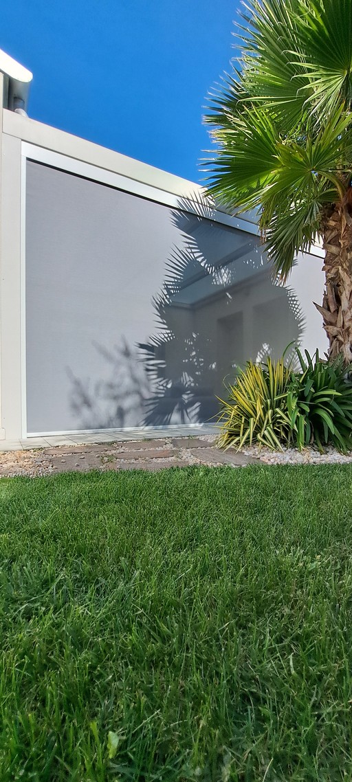 Coperture verticali perfette per balconi, verande e pergole. Proteggono da sole, vento e sguardi esterni con ingombro minimo.